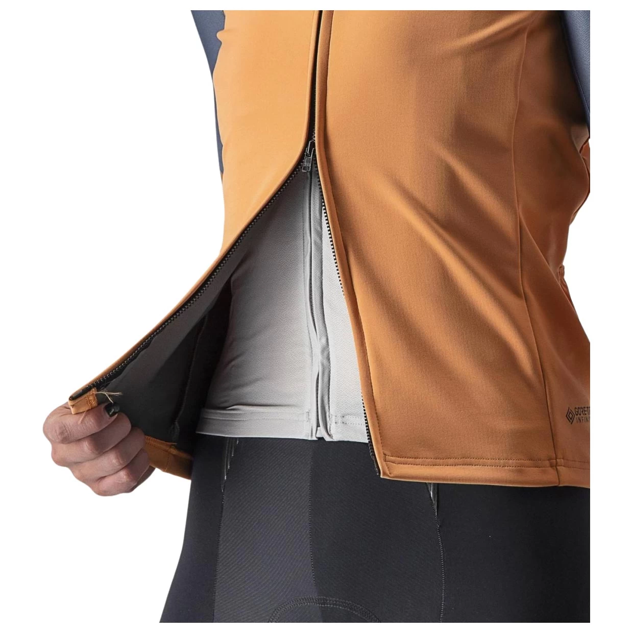 - GORE-TEX INFINIUM™ WINDSTOPPER® 203 Stretch-Material an der Vorderseite